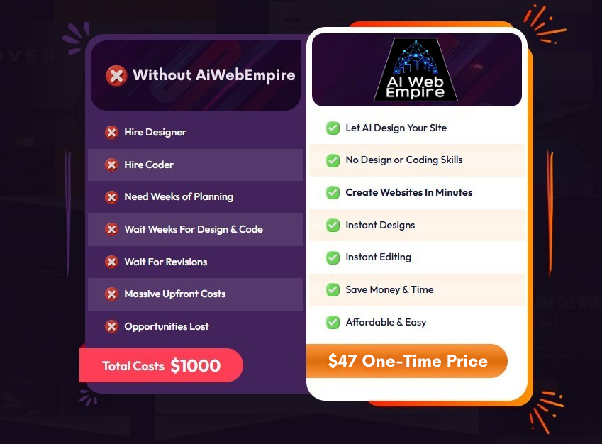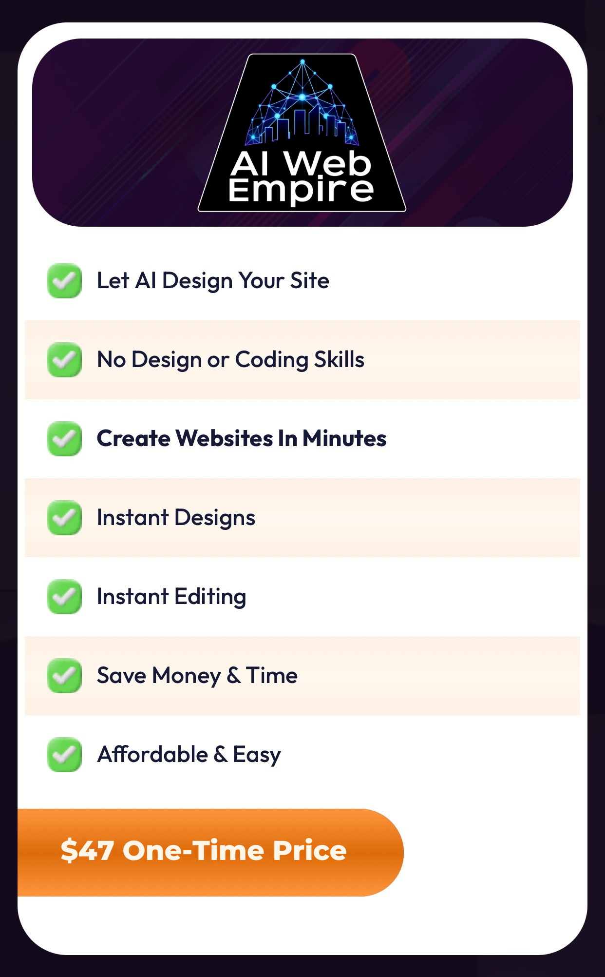 With AiWebEmpire you get access to all features for a jaw-dropping one-time price!